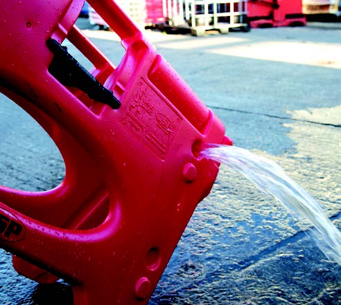 To empty, lift the end of the barrier furthest from the filling aperture and rest on the ground until the water ceases to flow.