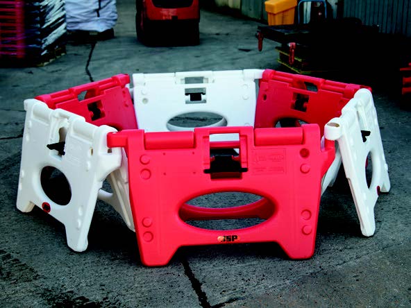 The uniquely foldable design allows for quick and easy deployment of the barrier.